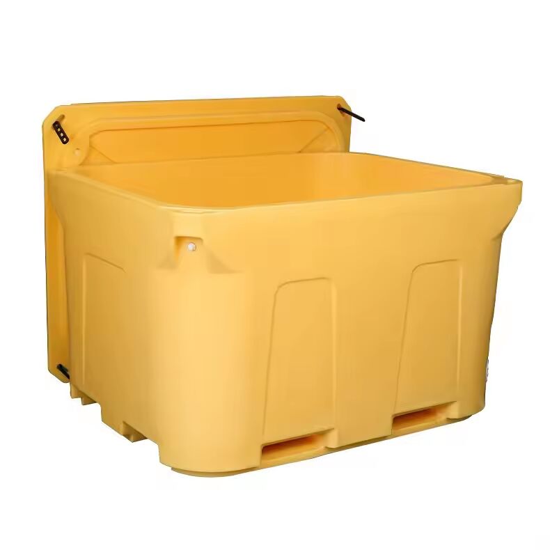 Thùng đá xoay khuôn dung tích lớn 1000L là một thùng cách nhiệt thương mại được thiết kế để giữ độ tươi ngon của hải sản trong quá trình bảo quản và vận chuyển. Được chế tạo bằng polyethylene chịu lực cao và lớp cách nhiệt bọt polyurethane, thùng giữ lạnh công nghiệp này mang lại khả năng giữ nhiệt vượt trội mà không cần điện.